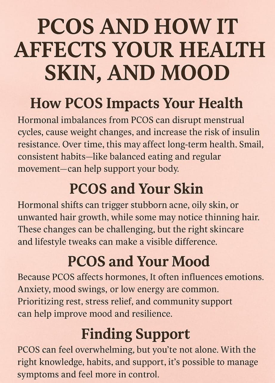 Polycystic Ovary Syndrome (PCOS) is a hormonal condition that affects millions of women worldwide. While it shows up differently for each woman, PCOS often impacts overall health, skin, and even mood.